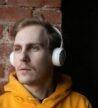 A dimly lit room features two large computer screens displaying complex audio editing software. Multiple speakers are visible in the background, with a digital clock and other electronic equipment situated below the screens.